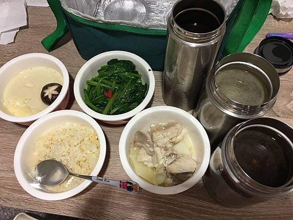 而且送進來的飯菜都是冷掉的,要自行拿去微波加熱才能吃到熱熱的飯菜;對於這點也覺得不太友善。之前生大寶時在臺安醫院、月中入住大安區的滿園,皆有自己的廚房,每次的餐點都是熱騰騰現做好,突然讓我好懷念啊!